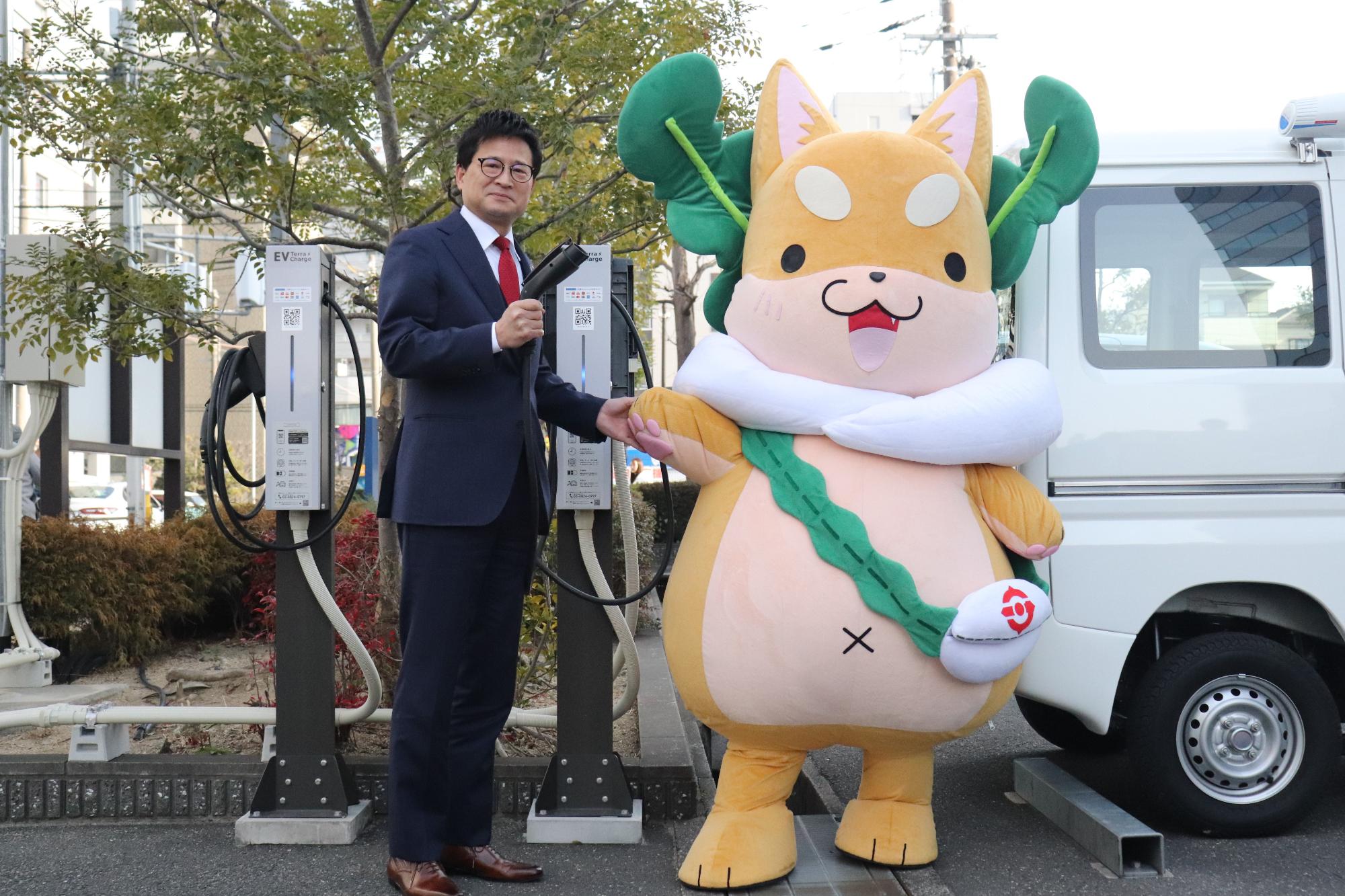 両者が協働して市内公共施設にEV充電スタンドを設置し、市内のEV充電インフラを整備することで、EV車の普及を促進し、脱炭素社会の実現を目指します。