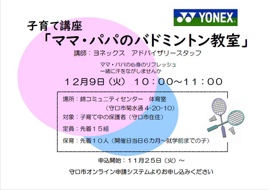 ※ヨネックス株式会社との公民連携による取り組みの一環として開催いたします。