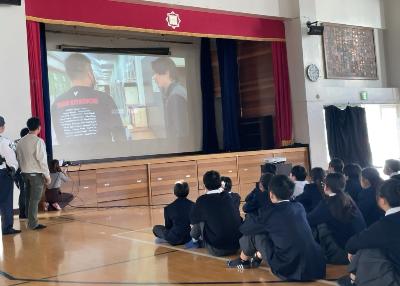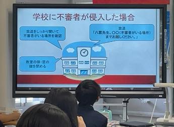 不審者侵入から生徒避難までの記録動画をみながら振り返り。