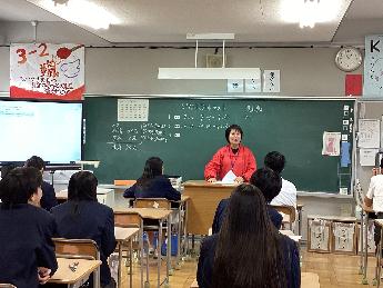 守口地区保護司会、守口地区更生保護女性会、守口ロータリークラブの方々のご尽力により、3年生を対象に「薬物乱用防止教室」を実施していただきました。