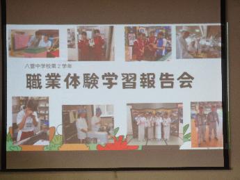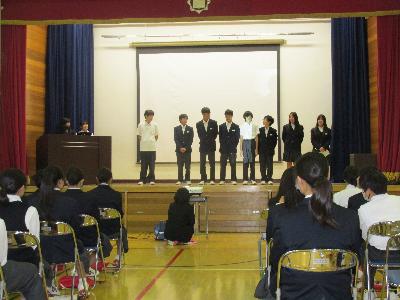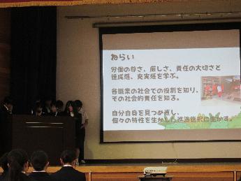 この日の生徒集会では、2年生による職業体験学習の報告がありました。