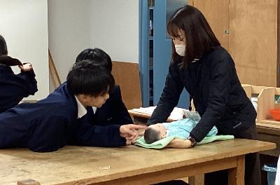 赤ちゃん人形で”おむつ交換体験”をしました。