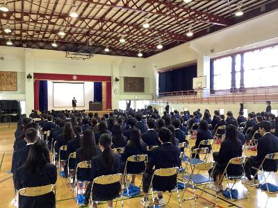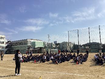 非常時に適切な行動ができるよう、安全のための知識、判断力、態度を身につけなければなりません。今日の訓練は、事前予告なしです。休み時間に突然大地震が起こる想定で訓練を行いました。