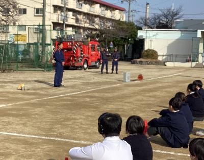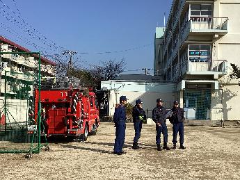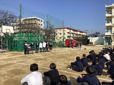 職員は初期消火と消防への通報、生徒たちは揺れがおさまってからグラウンドの中央に集合しました。