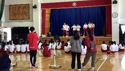 プロのダンスチームの方に指導していただきました。この日は3回目の授業で、発表会です。パフォーマンスはもちろん、ギャラリーの応援もめいっぱい!