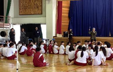 学生のときに阪神淡路大震災を体験されたこと、実際に大災害が起きたときには何もできないかもしれないということ、そのなかでも命を守るための行動をとらなければならないことなどを話してくださり、子どもたちも真剣に聞き入っていました。