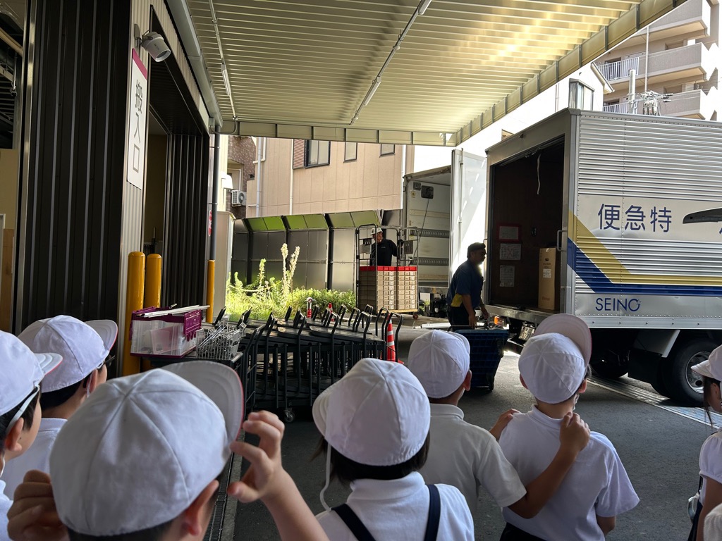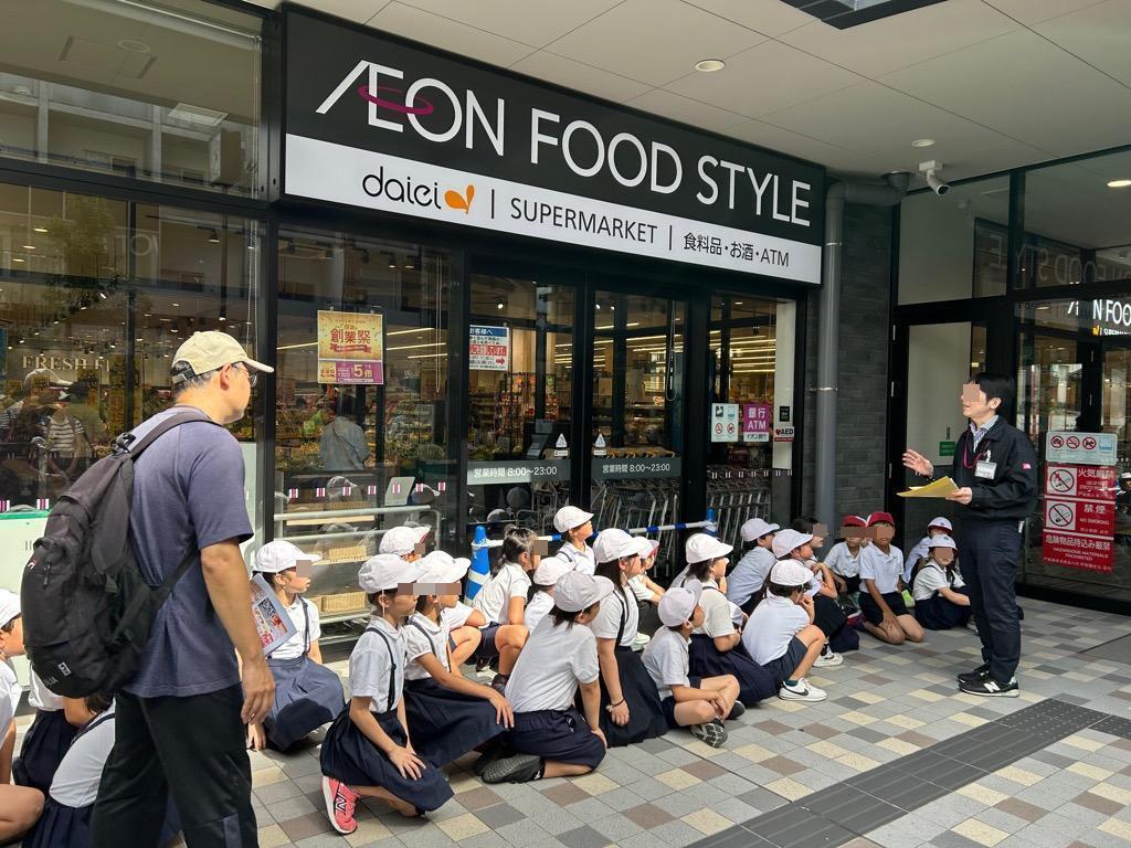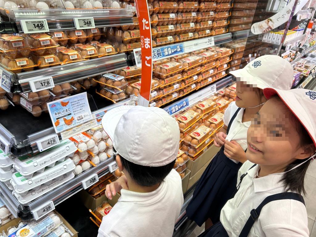 3年生が社会科の学習でスーパーマーケット見学に行ってきました。イオンフードスタイル守口店の皆様の全面的なご協力を賜り、なんと実際に販売している商品のポップづくりに挑戦させていただけることになりました。これから子ども達は、りんご、みかん、秋さけ、鶏のから揚げの4つの商品のポップづくりに取り組んでいきます。さて、売場責任者の方の目に留まり、実際に取り付けてもらえるのは、どの班のポップか?続報をお待ちください。