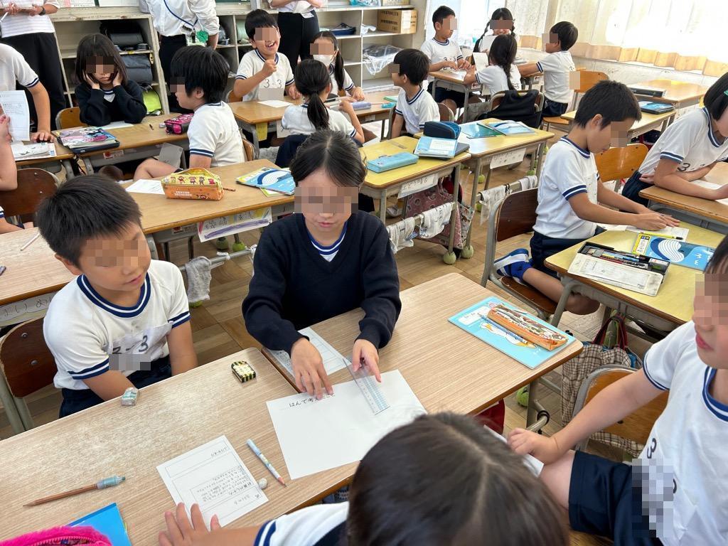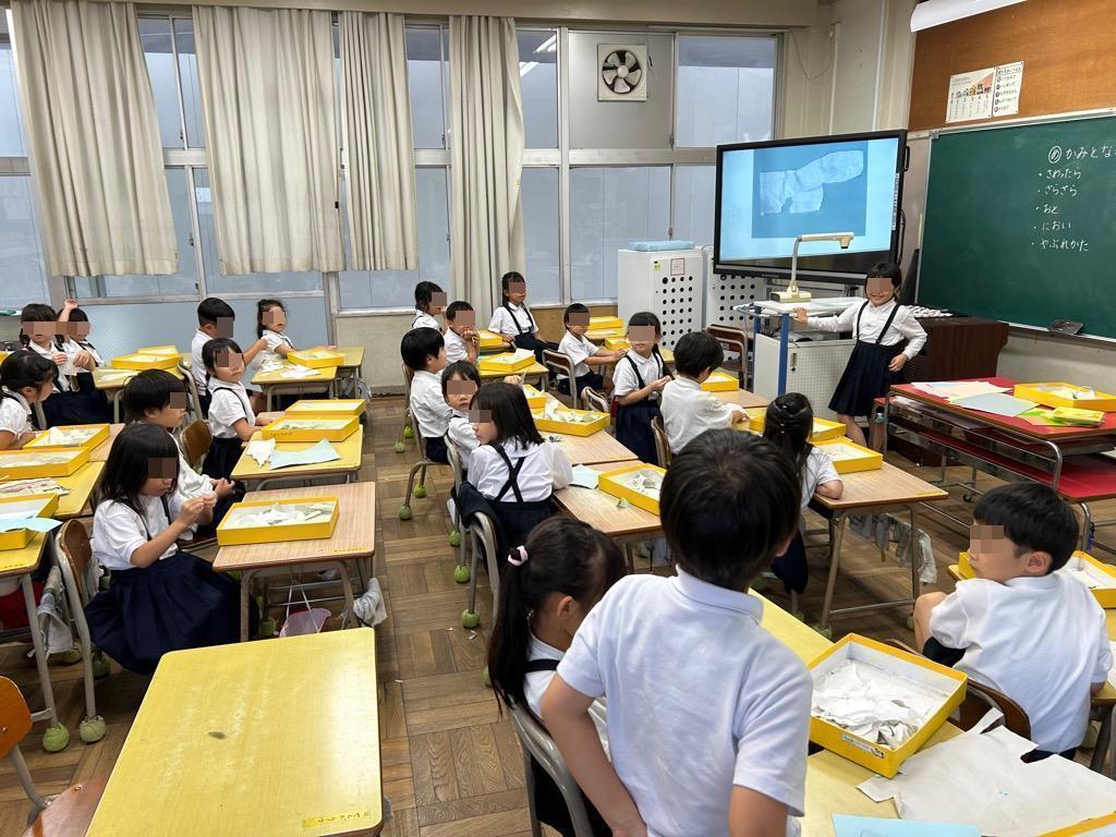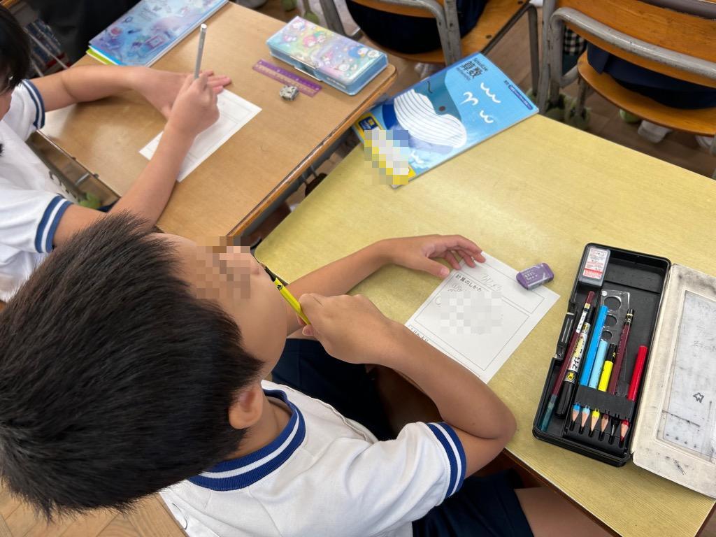 2年生の各教室では、2つの形の違いを言葉で表す、キーボードの指使いなどのタイピング練習、花火の作品作りなどに取り組んでいました。子ども達の真剣な表情がきらりと光っていました。