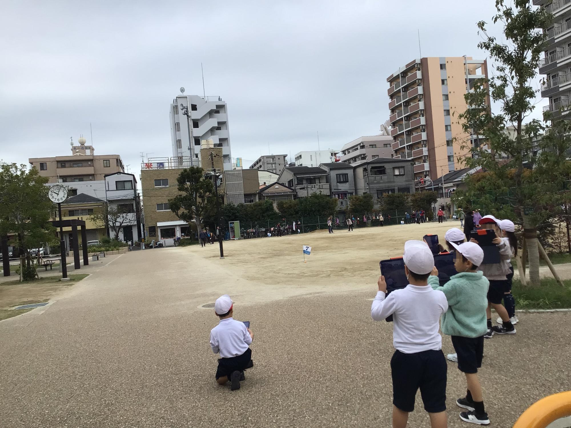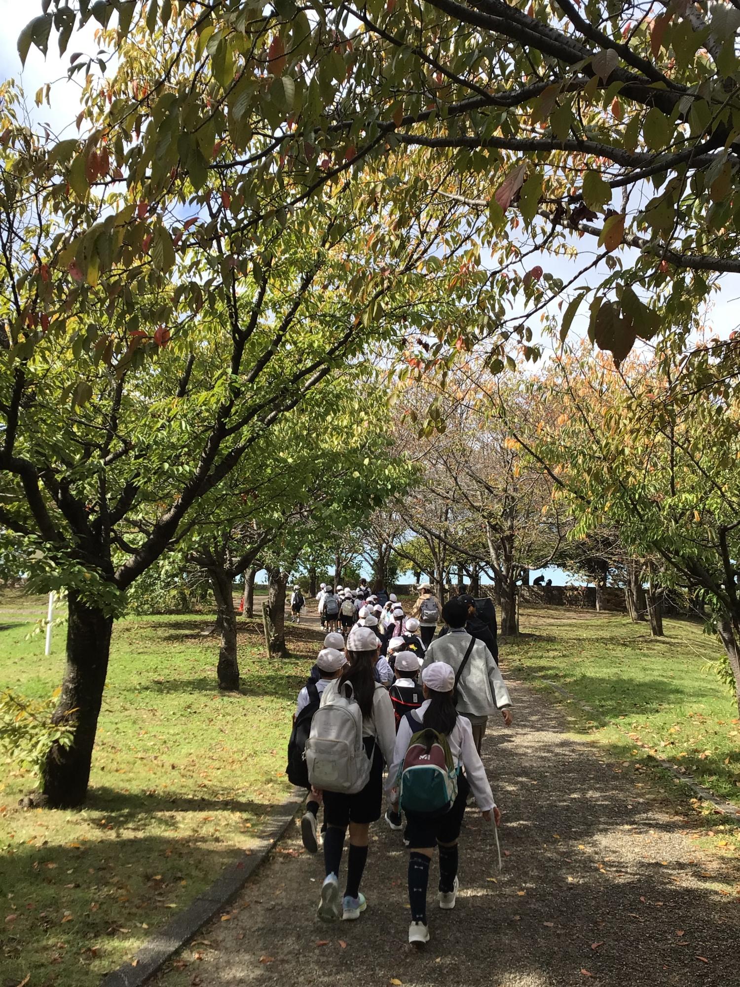 2年生が町探検に出かけました。子ども達が地図を使いながら散策し、自分たちが選んだ「おすすめポイント」を紹介していきます。各班にはリーダー、記録、保健・お茶、遊びリーダーの役割があり、休憩中には「お茶飲んだ?」とメンバーに声をかける姿もありました。自分の役割をちゃんと果たそうと頑張る姿がたくさん見られました。歩きに歩いた町探検でしたが、河川敷に着くと疲れも忘れ、100名近くになる全員で「だるまさんがころんだ」などの遊びをして、大いに盛り上がりました。自分たちの力で作り上げた素晴らしい探検となりました。子ども達の安全をサポートしていただきました保護者の皆様に、心より感謝申し上げます。