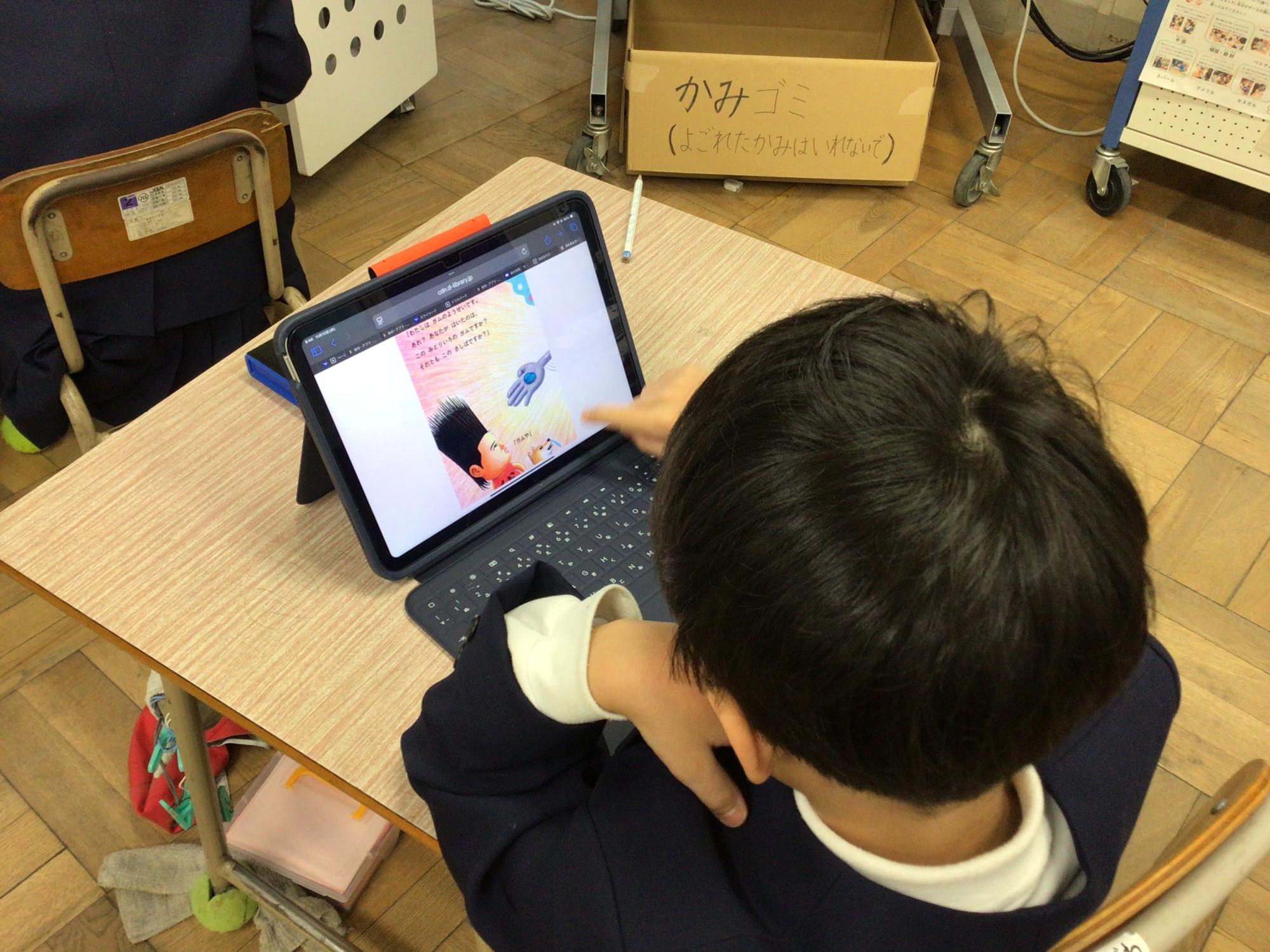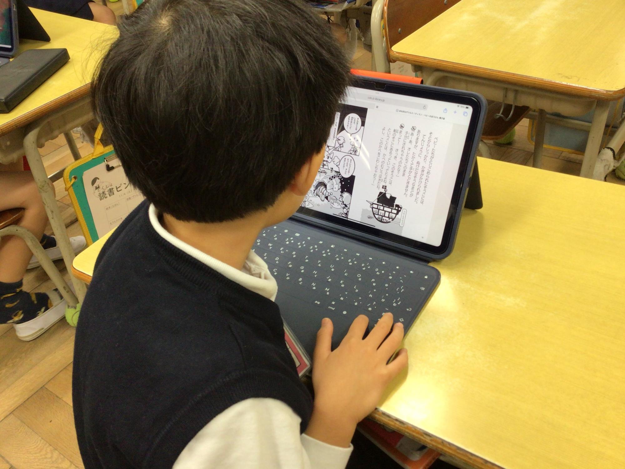 守口市立図書館の「もりぐち電子図書館」を利用できるようになり、タブレットPCで電子書籍を読んでいる子もいました。
