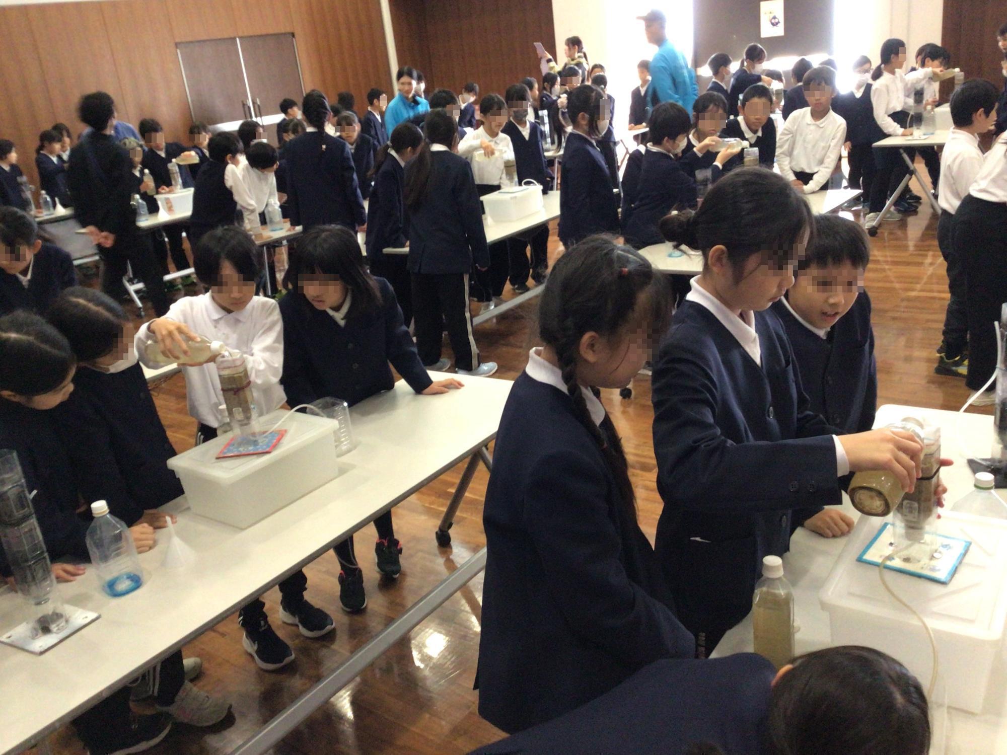 4年生が柴島浄水場に校外学習に行ってきました。ライフラインの一つである水道水が、どのようにして作られ、どのように守られているのか等について学習していました。班ごとで行う実験も用意してくださり、子ども達は目を輝かせながら意欲的に取り組んでいました。他の乗車客の方を気遣う電車内でのマナーを守る態度などから、大きな成長を感じる校外学習となりました。