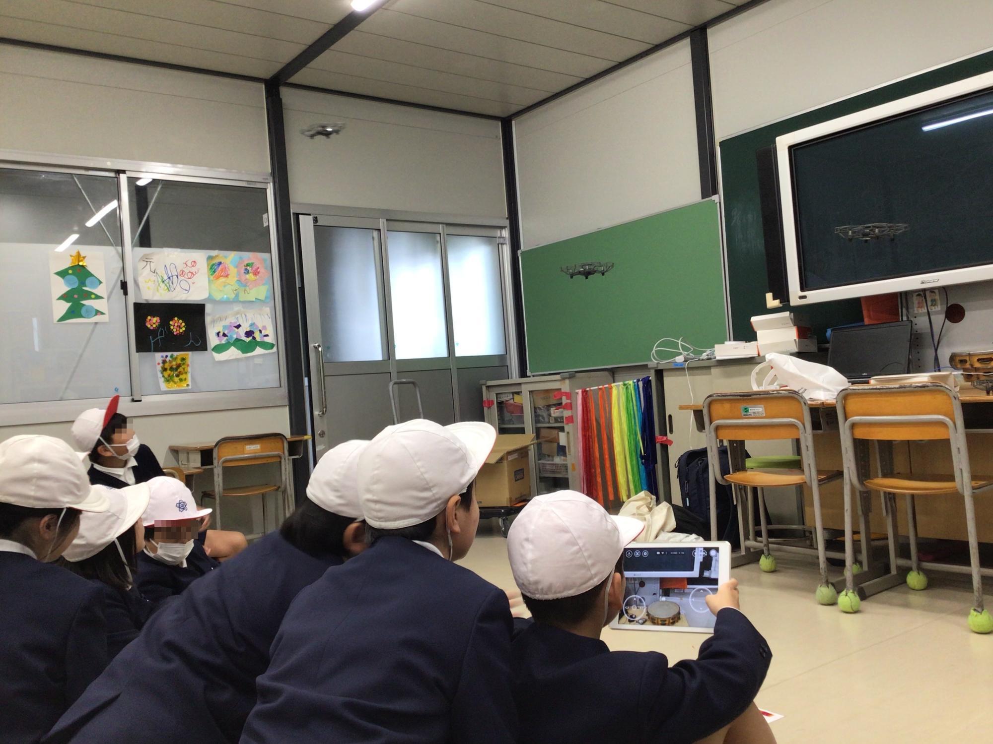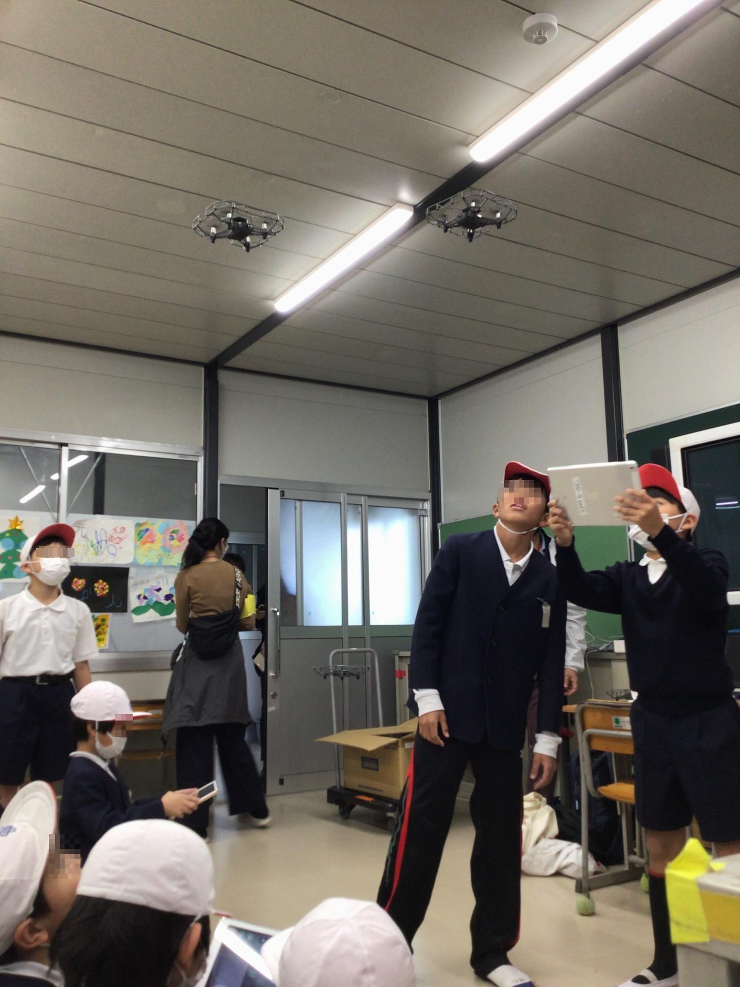今日は5・6年生のクラブ活動の日でした。体育館では、大縄跳びや自分たちで考えたゲームで汗を流している子ども達がいました。隣のB棟では、教室の中で飛行物体が宙に浮かんでいました。ドローンです。理科実験でお世話になっている「TOMO~NI(株式会社パソナ日本総務部が運営)」の方のご厚意で実現したものです。子ども達は、いつもと違ったコンピュータークラブを、満面の笑みで楽しんでいました。