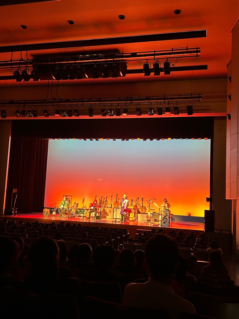 本日、エナジーホールにて「面白民族楽器大集合パレード」と題した音楽鑑賞会を開催しました。北国、南国、砂漠の三味線による演奏をはじめ、会場には〇や△の形をした楽器や、不思議な音を奏でる弦楽器など、世界各地の珍しい楽器が勢ぞろい。親しみのある曲に身を揺らし、子ども達は多様性と調和の空間を楽しんでいました。