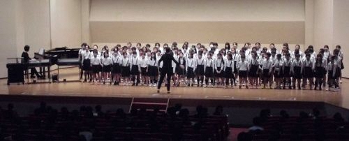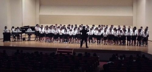 4年生が、大和田の大阪国際大学・奥田メモリアルホールにて行われた「守口市立学校音楽会」に出場しました。リコーダー奏「茶色の小びん」斉唱「チャレンジ!」を、元気いっぱいに披露することができました。