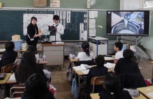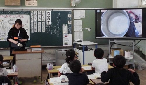 国語で習った「すがたをかえる大豆」について、栄養教諭の寺西先生が食育の授業をしてくれました。目の前で出来上がる湯葉や豆腐にみんな興味津々!「いいにおいしてきた!」「これ、給食に出るの?」、終わりのチャイムが鳴ったら、「え、もう終わり?もっと見たい!」などと口々につぶやいていました。
