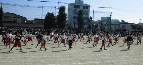 抜けるような青空の下、「心を一つに、笑顔あふれる運動会」をスローガンに、運動会が行われました。どの学年も精一杯がんばっている姿を、お家の方に見せることができ、楽しい一日となりました。