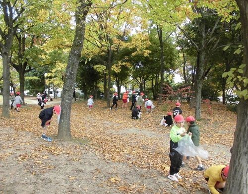 1,2時間目に、鶴見緑地まで「秋見つけ」に行きました。残念ながら1年3組は学級閉鎖中でしたが…いろいろな形のどんぐりや、きれいな色の落ち葉などをたくさん集めたり、遊具で楽しく遊んだりして、みんな大満足でした。