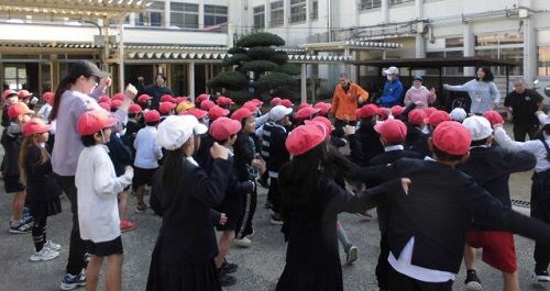 錦中の3年生が、小学校に来て、小学生と一緒に給食を食べ、懐かしい小学校生活を思い出すという行事です。昼休みには運動場で一緒に遊んでもらい、みんな満足そうでした。