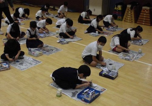 今朝、学校の周りでクマゼミが鳴いていました。まだまだ夏は終わらないということでしょうか。そんな暑さの中、4年生は理科の学習で作った空気鉄砲に水を入れて、圧力の勉強をしました。この暑さにはぴったりの教材です。楽しんで学習できた様子でした。
